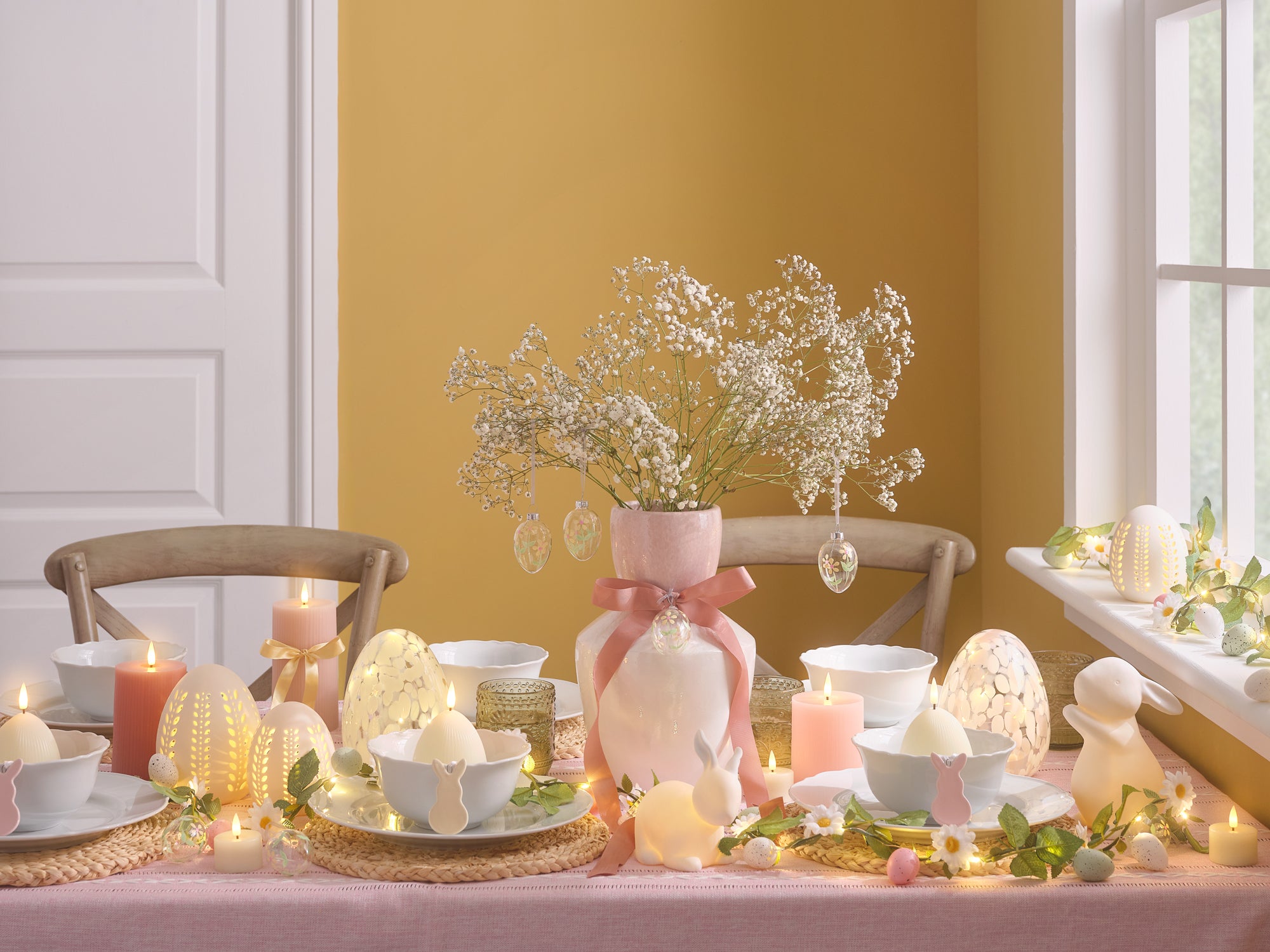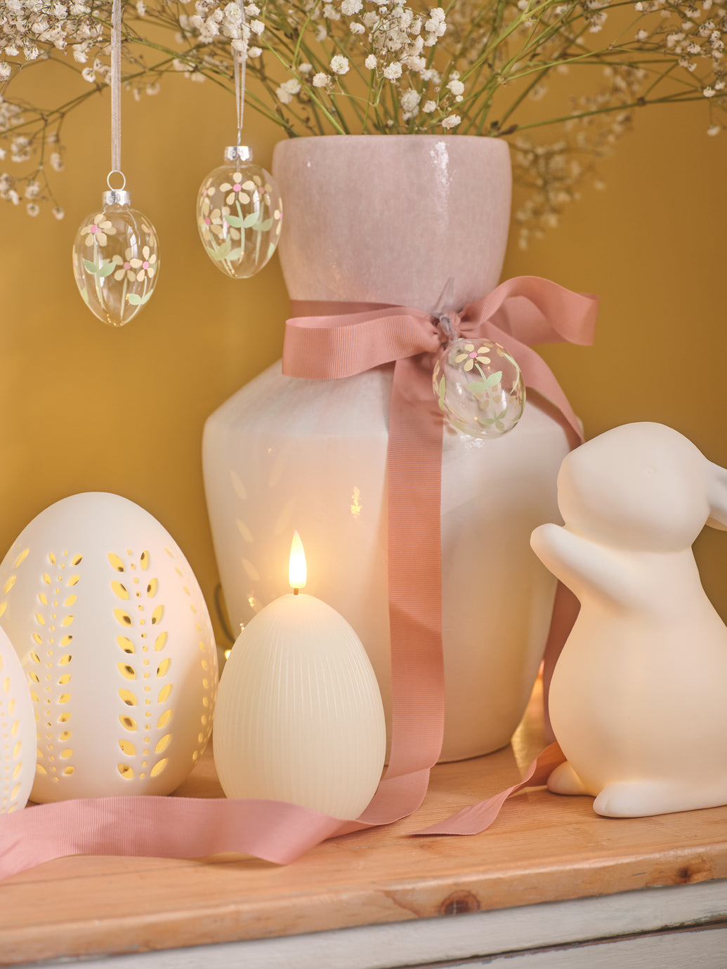 Zarte Glaseier hängen an mit Bändern geschmückten Zweigen, die Tische sind mit hängenden Hasengirlanden und flackernden Kerzen gedeckt, und jede Szene ist in ein sanftes, goldenes Licht getaucht. Dies ist eine fröhliche, charmante Ostergeschichte, die voller Leben ist und vor Frühlingsfreude nur so sprüht.