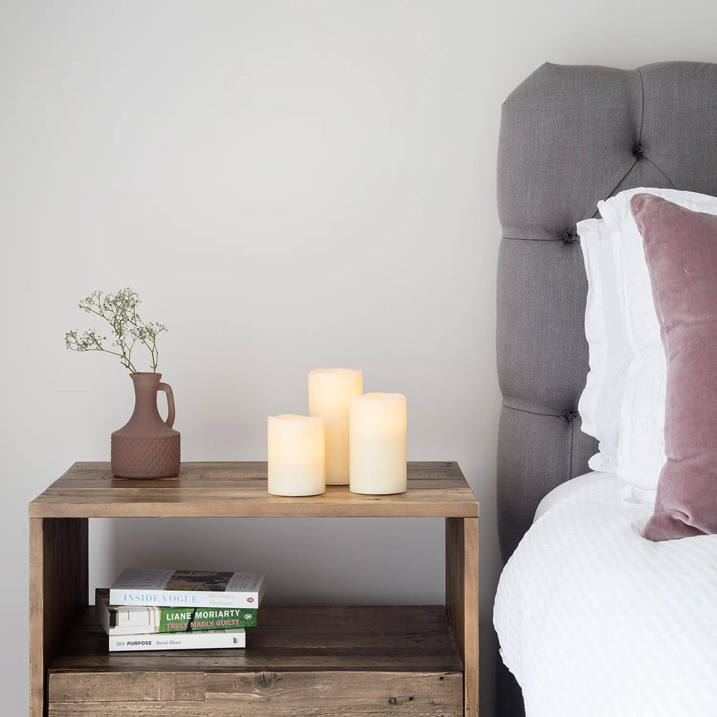 Stelle ein paar LED Kerzen neben dem Bett, auf der Fensterbank oder dem Nachttisch auf und genieße das leichte Flackern. Du kannst auch einen praktischen Timer einstellen, mit dem sich die Kerzen wie dein persönliches Nachtlicht jeden Abend um die gleiche Uhrzeit ein- und ausschalten.