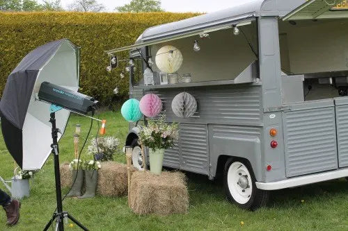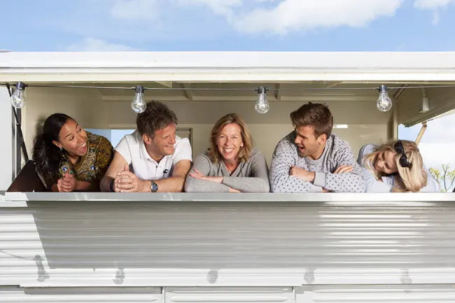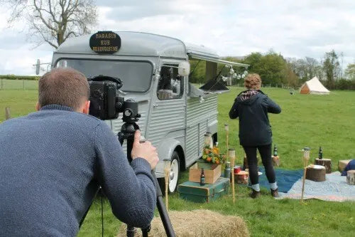 Hier unser Team mit einer verdienten Erfrischung nach der harten Arbeit – startend von links, sind Sheree, Tim, Jo und Matt aus dem Lights4fun Team und die Stylistin Lucy zu sehen. Fotograf Ollie hat natürlich das Foto von der kreativen Truppe geschossen.