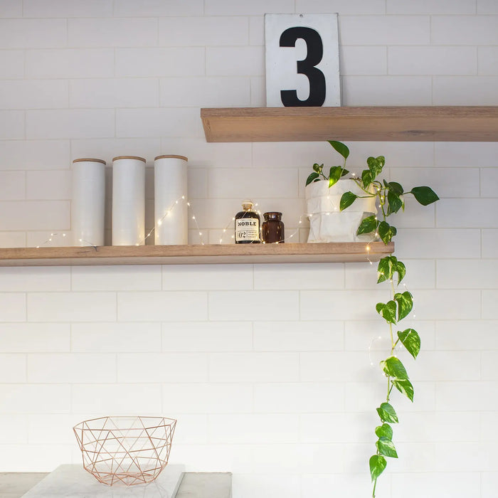 Unser erster Tipp für’s Frühjahr 2019 sind zarte Micro Lichterketten locker drapiert auf einem Regal. Der minimale Trend ist total IN und wir lieben diesen Look.