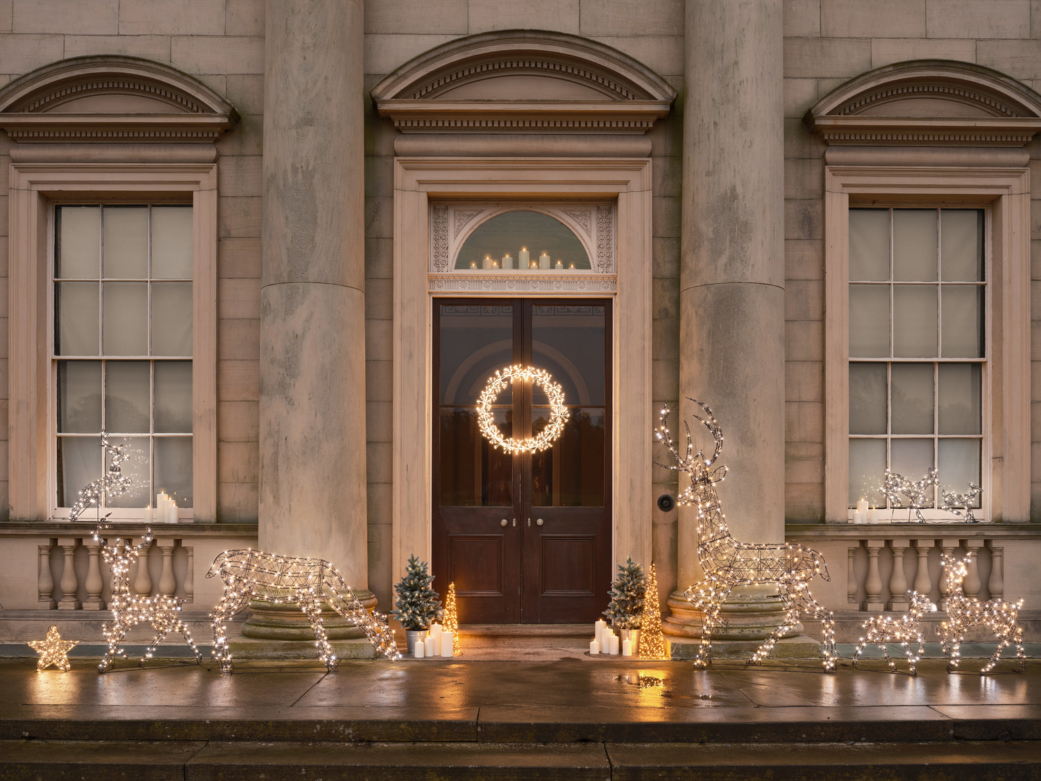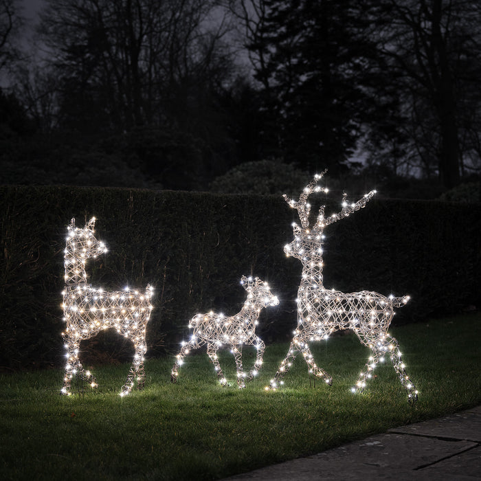 Die größte Auswahl nutzt sichere Niedervolt‑Netzteile – praktisch mit 8m Zuleitung und 6‑h‑Timer (modellabhängig), z.B. Studley Rentier 2m (24V) oder Harewood Rentier (31V).