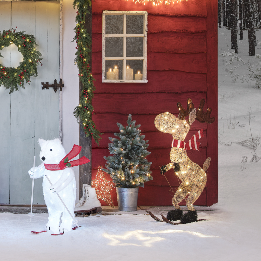 Für alle, die eine ruhige und naturnahe Stimmung bevorzugen, bieten unsere Weihnachtsfiguren in Tierform die perfekte Wahl. Von charmanten Eichhörnchen über niedliche Eulen bis hin zu eleganten Polarbären – unsere leuchtenden Tierfiguren bringen eine märchenhafte Atmosphäre in Deinen Garten.