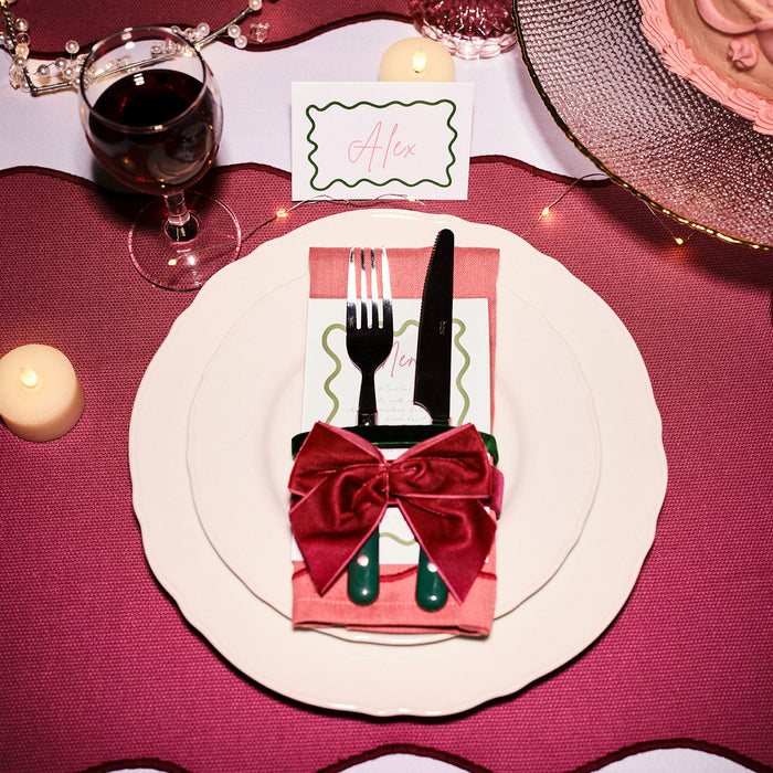 Die Basis für einen schönen Abend mit Herzensmenschen ist ein stimmungsvolles Dinner Setting. Wähle einen besonderen Ort in deinem Zuhause - sei es der Esstisch oder ein kleines Arrangement vor dem Kamin. Eine hochwertige Tischdecke in knalligen Farben wie Pink oder Rot kann dabei eine tolle Grundlage bilden. Kombiniere dies mit stilvollen und farblich abgestimmten Stoffservietten und edlem Geschirr. Erstelle eigene Menükarten und Platzkarten für eine persönliche und liebevolle Note. Kleine Vasen mit frischen Blumen wie Tulpen in der Farbfamilie der Tischdecke setzen Akzente und bringen einen frischen Touch in die Dekoration. Teller, Besteck und Gläser wirken am besten harmonisch aufeinander abgestimmt. Ob verspielt oder klassisch: Deiner Kreativität sind keine Grenzen gesetzt.